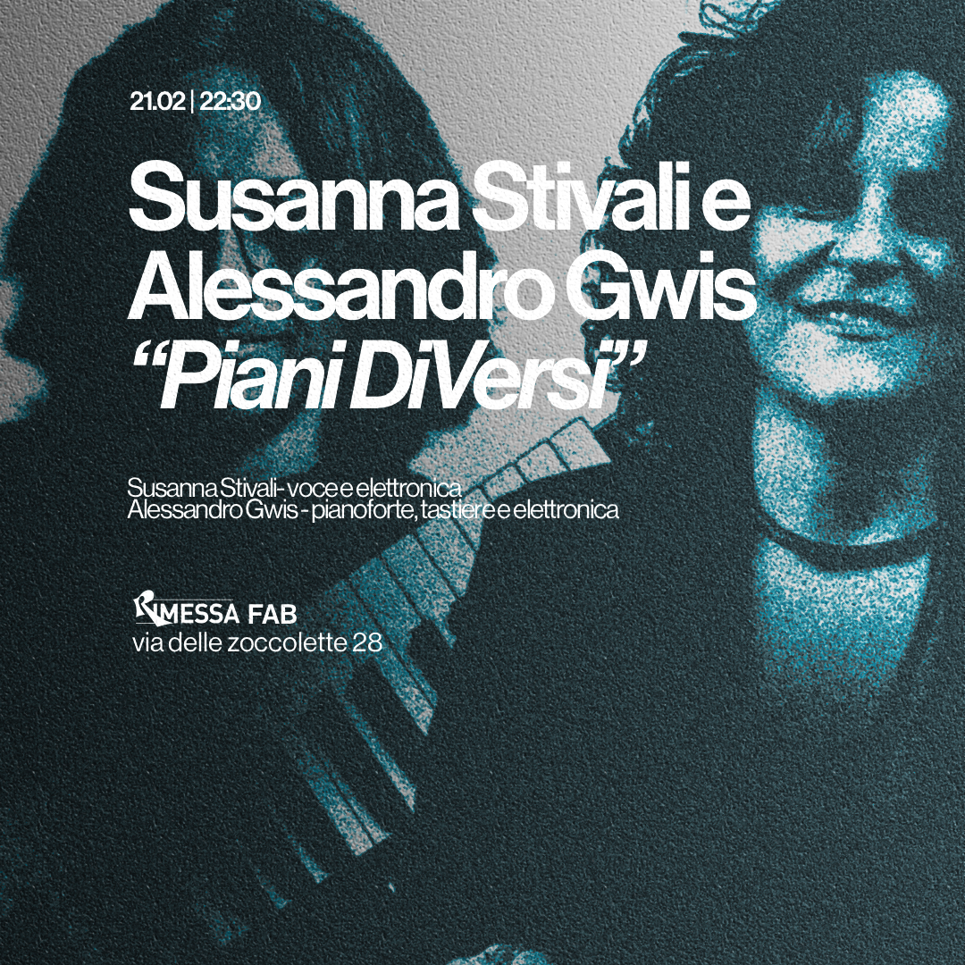 Susanna Stivali (voce, elettronica) e Alessandro Gwis (piano, tastiere, elettronica) in un duo tra jazz, improvvisazione e poesia, nato da una collaborazione decennale.