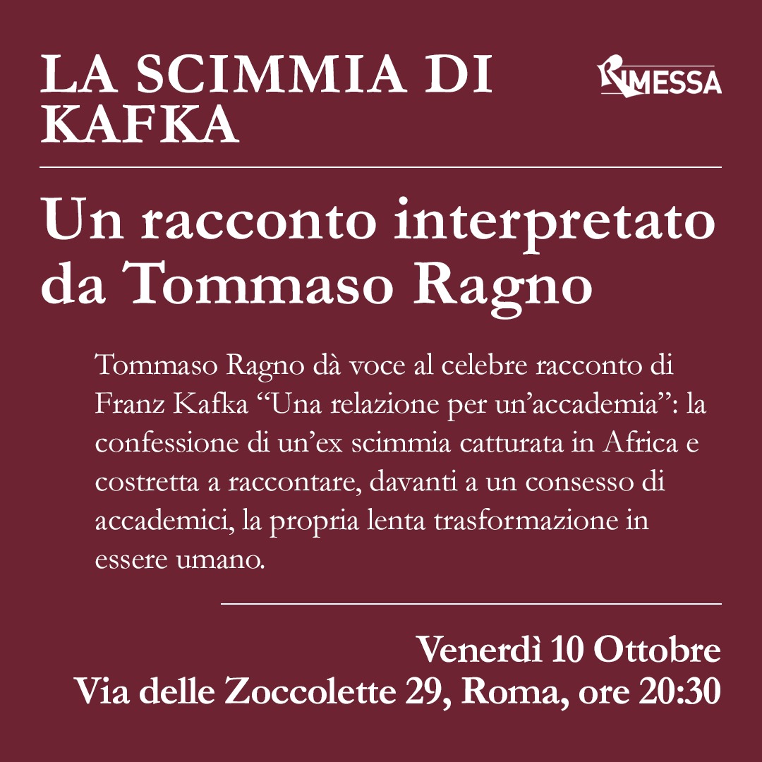 Tommaso Ragno dà voce al celebre racconto di Franz Kafka “Una relazione per un’accademia”: la confessione di un’ex scimmia catturata in Africa e costretta a raccontare, davanti a un consesso...