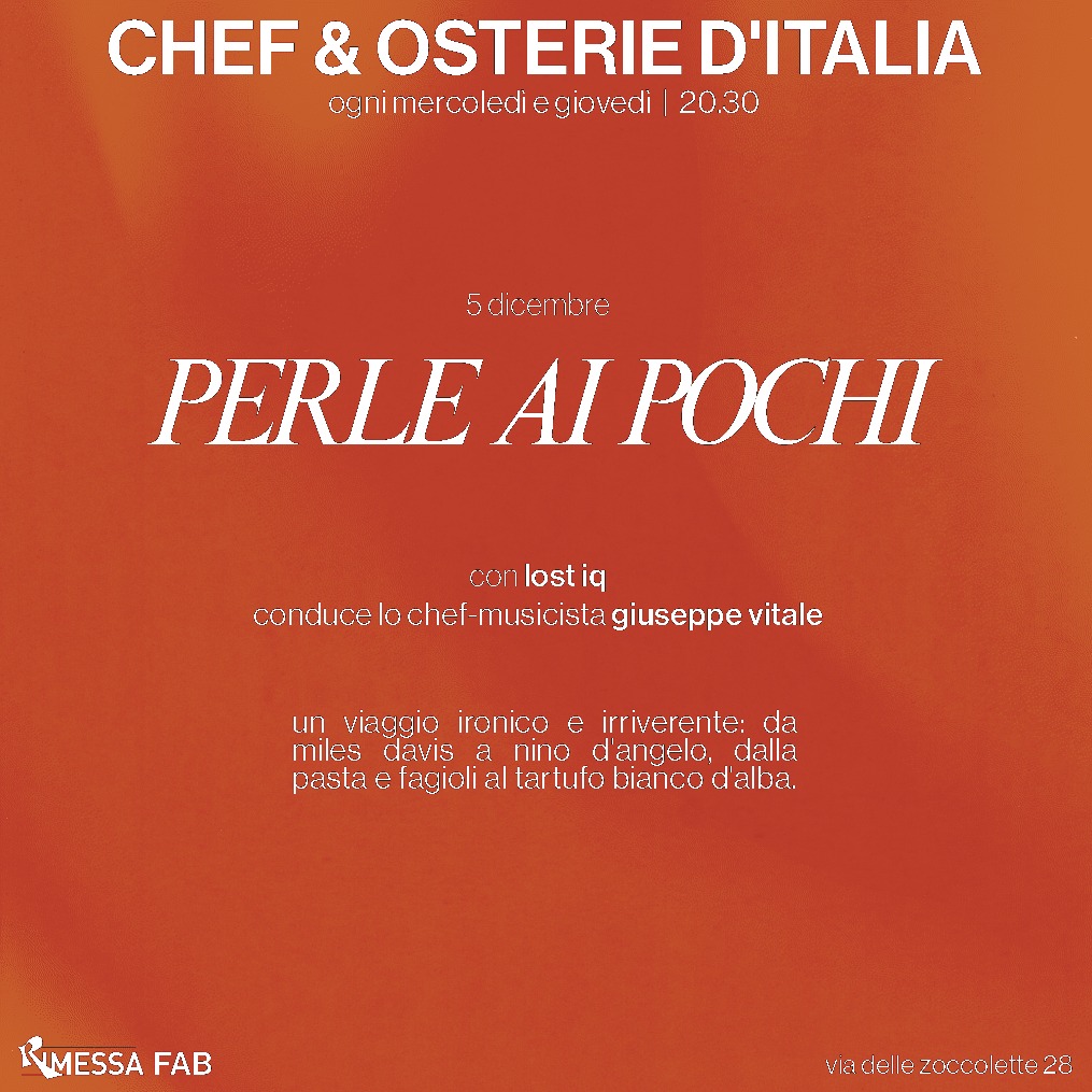 Menu fisso di 3 portate + musica + chef Un viaggio ironico e irriverente: da Miles Davis a Nino D’Angelo, dalla pasta e fagioli al tartufo bianco d’Alba. Conduce lo...
