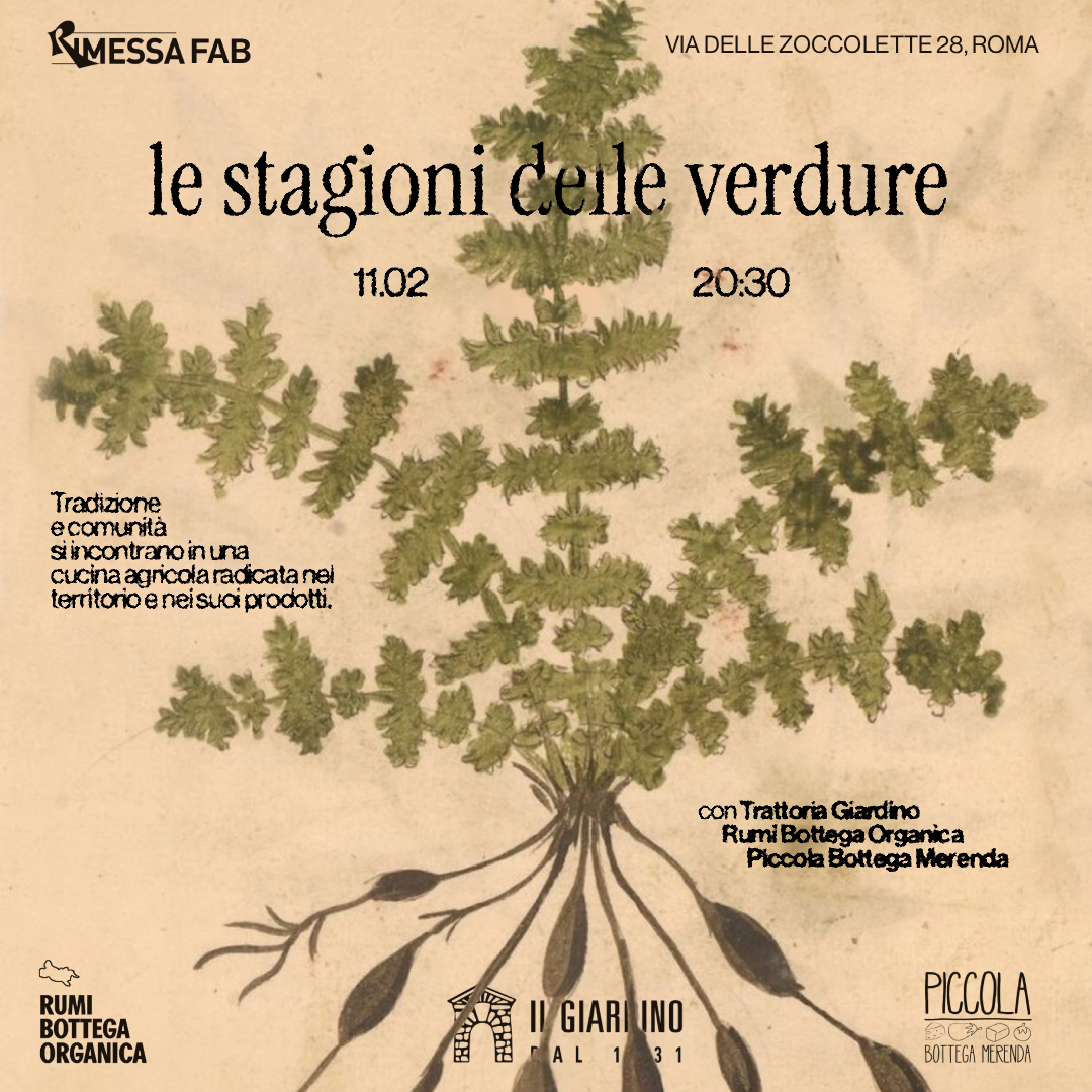 Osterie d’Italia - Le stagioni delle verdure 11.02 - 20:30 Rum Bottega Organica, Il Giardino di Zagarolo e Piccola Bottega Merenda. Un racconto corale sulla cucina vegetale, agricola e stagionale...